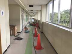 こんな感じに廊下もなっています。 エアコンを設置してくれる業者の方にはもちろん感謝ですが、これらの設置費用は税金で賄われています。大人が一生懸命働いて稼いだお金の一部が、皆さんが物を購入して際に支払っているお金の一部が、巡り巡ってエアコンになるのです。すべての人に感謝の気持ちをもって、完成を待ちましょう。 また、エアコンが入ったらますます勉強に身が入るので、私たちの学力も上がりますね。学力を上げることで、感謝の気持ちを表せる直中生でありたいね。