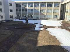 こちらは、2月18日(水)の中庭の様子です。2週間でこんなにも雪が消え、春がすぐそこまで来ていることを感じます。 さて問題です。雪は画像の左側から消えています。それはなぜでしょうか?理由が分かった人は、校長先生に教えてくださいね。 何気なく2枚の画像を比べたたけで、いろんなことに気付きます。なんでだろうと思う心を大切にしたいですね。