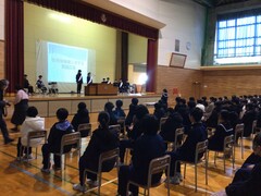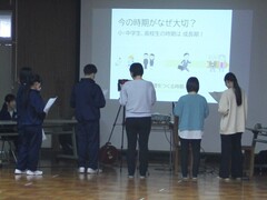 上越市健康づくり推進課の保健師と栄養士の方に来校いただき、「今からできる生活習慣予防」をテーマに行いました。当初は体育館で行う予定でしたが、インフルエンザの流行の兆しがあることから、急きょ各教室でオンライン配信の形をとりました。