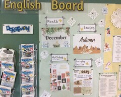 ALTのルビ先生が作成してくれているイングリッシュボードが新しくなりました。12月は、クリスマスソング特集です。日本にもクリスマスソングはたくさんありますが、クリスマスはヨーロッパ発祥の文化ですから、海外の曲もたくさんあります。今回は、海外のクリスマスソングを紹介してくれています。