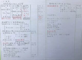 学年委員会と学習委員会の共同企画で、「勉強の質UPキャンペーン」が行われています。班ごとに参考になるノートを1冊決め、そのコピーを廊下に掲示します。これによって、仲間がどのようにノートを工夫しているかを知り、自分の学習方法の改善に生かそうというものです。画像は、社会科の近代の学習ノートです。3列に分けて1列目は起きたこと、2列目に起きた年、3列目にその背景や目的と分けているところがいいですね。すごく分かりやすいですね。一目見て分かるとテスト前の振り返りに役立ちます。