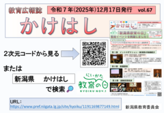 新潟県教育委員会から教育広報誌「かけはし」67号が届きましたのでお知らせします。 今回は、容量が大きいいため下記のURLからご覧願います。