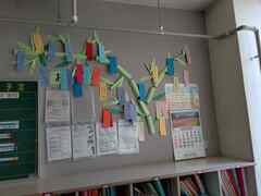 がんばり行軍から一週間がたち、生徒の皆さんの筋肉痛もすっかりとれ、音楽祭に向けた元気な歌声が学校中に響いています。教室を回ると、がんばり行軍の振り返りの掲示物を見付けました。左の画像は、校長先生が選ぶ「がんばり行軍絵日記大賞」です。足が痛む中、皆で頑張って走っている様子がよく伝わってきます。